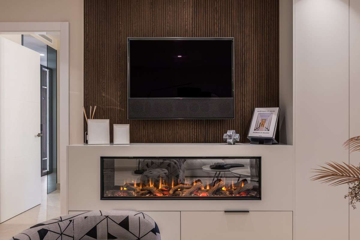 system, tailormade wardrobes and an electric fireplace.