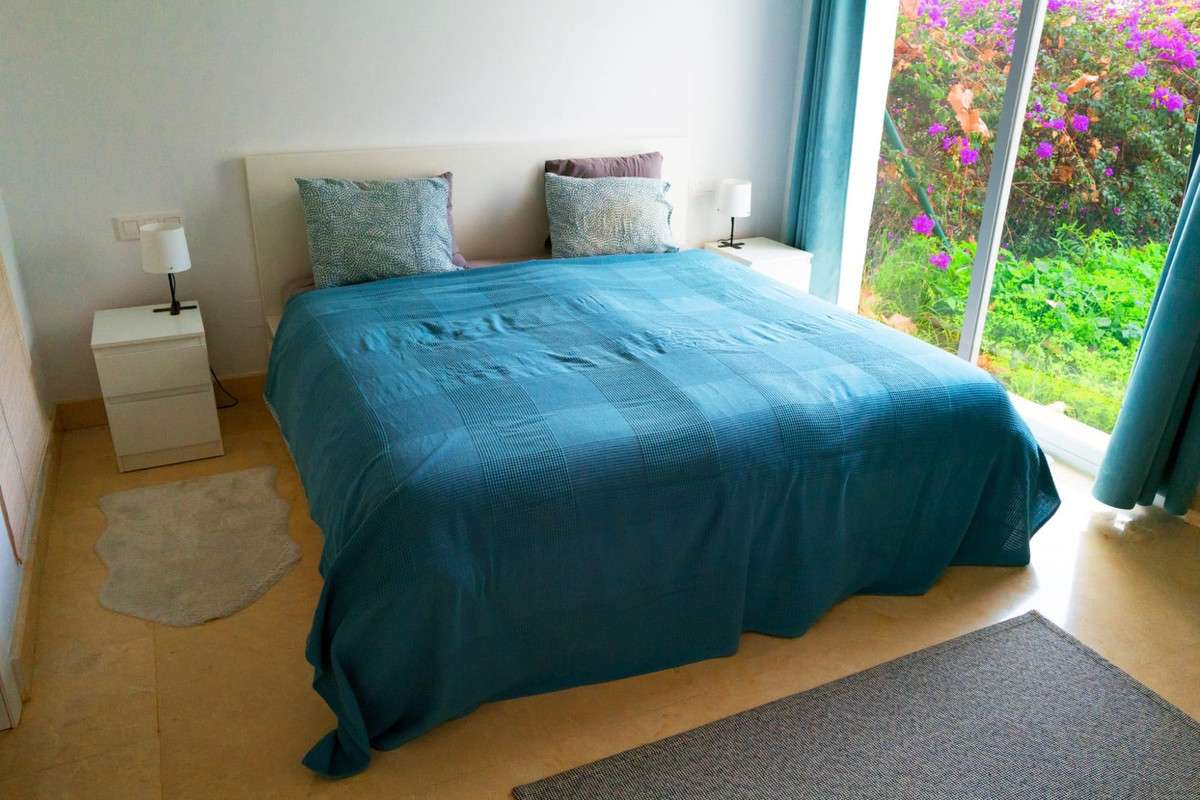 Taking the second staircase down, you reach the sleeping quarters: three bedrooms and two bathrooms, including a master bedroom with its own en-suite. Each bedroom features sliding doors that lead directly into the private garden — an ideal spot to relax and enjoy the year-round sunshine.