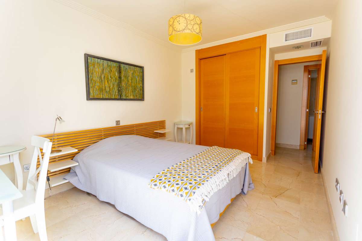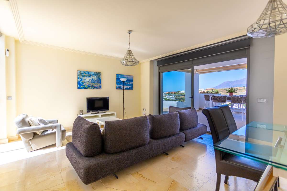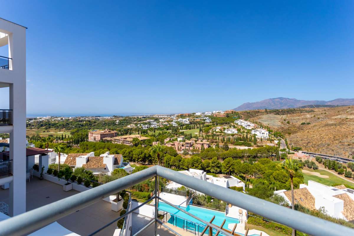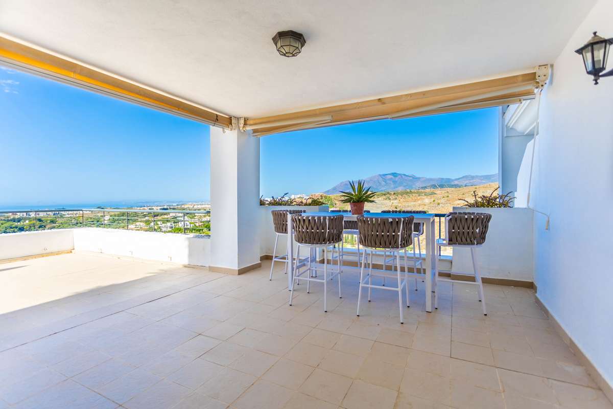 This apartment, located in the prestigious New Golden Mile area, stands out for its stunning panoramic views of the sea, mountains, countryside, and golf course. The property, situated within a gated community, offers a safe and peaceful environment, ideal for those seeking a high quality of life in a privileged location, close to both golf courses and the city.