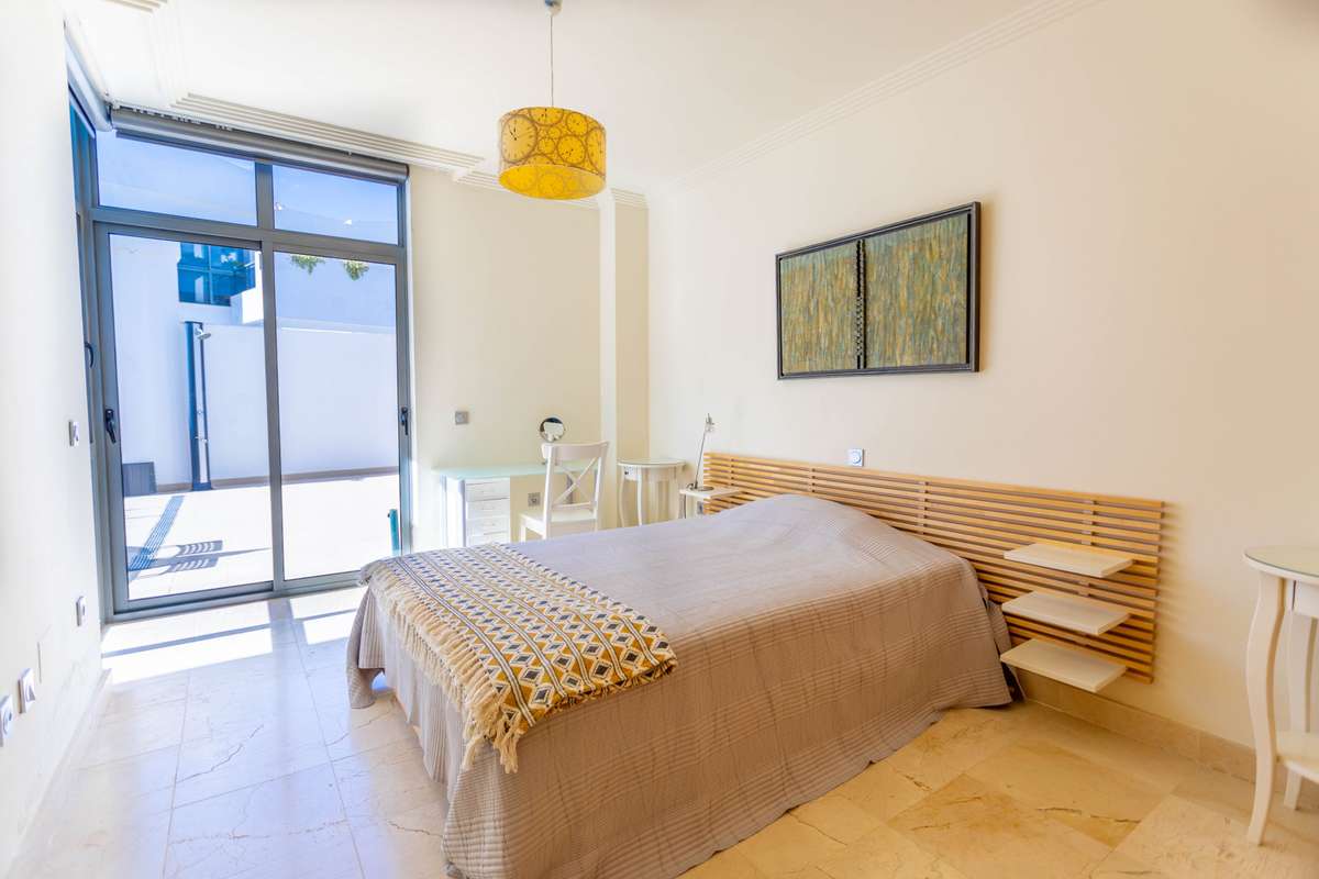 The residence features a built area of 130 m² and a spacious terrace of the same size, providing outdoor spaces from which to enjoy views of the garden and the communal swimming pool. The apartment comprises two bedrooms and two bathrooms, as well as a bright living-dining room and a fully equipped kitchen.